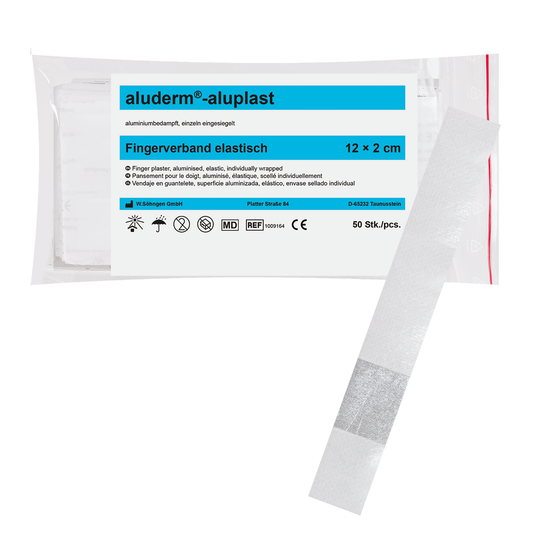 aluderm®-aluplast sårforbindingsplaster. aluderm®-aluplast er det spesielle sårbandasjeplasteret med aluminiumsbelagt aluderm®-sårpute og absorberende fleece. aluderm® fester seg ikke til såret, frynser ikke, er svært absorberende, kan hjelpe huddannelse og tilheling, og puster.