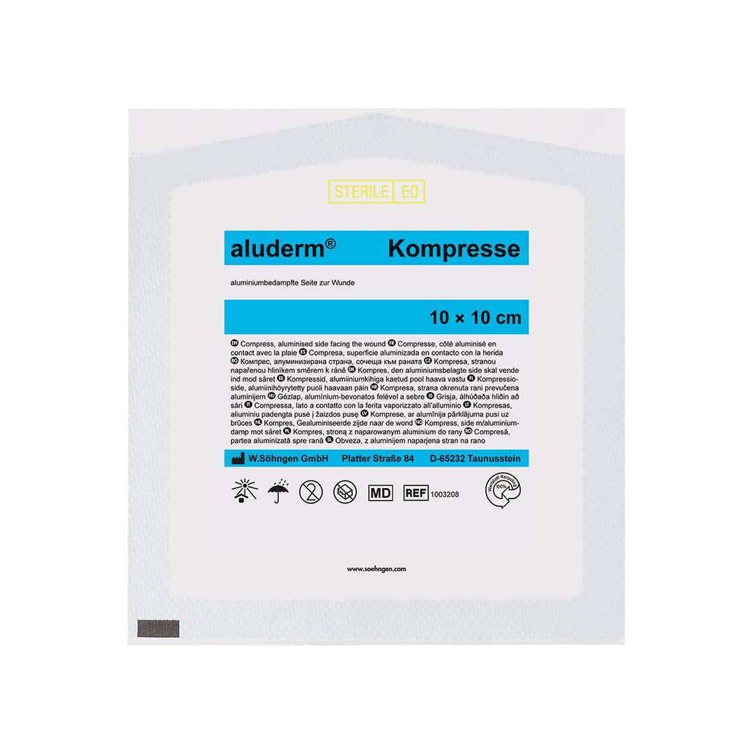aluderm®-kompresser brukes spesielt til førstehjelpsbehandling av mindre sår. Avhengig av hvilke deler av kroppen aluderm®-kompressen skal brukes på, kan den kombineres med en WS-elast. Bandasjer, nettbandasjer eller SÖHNGEN®-Silk kan festes sikkert.