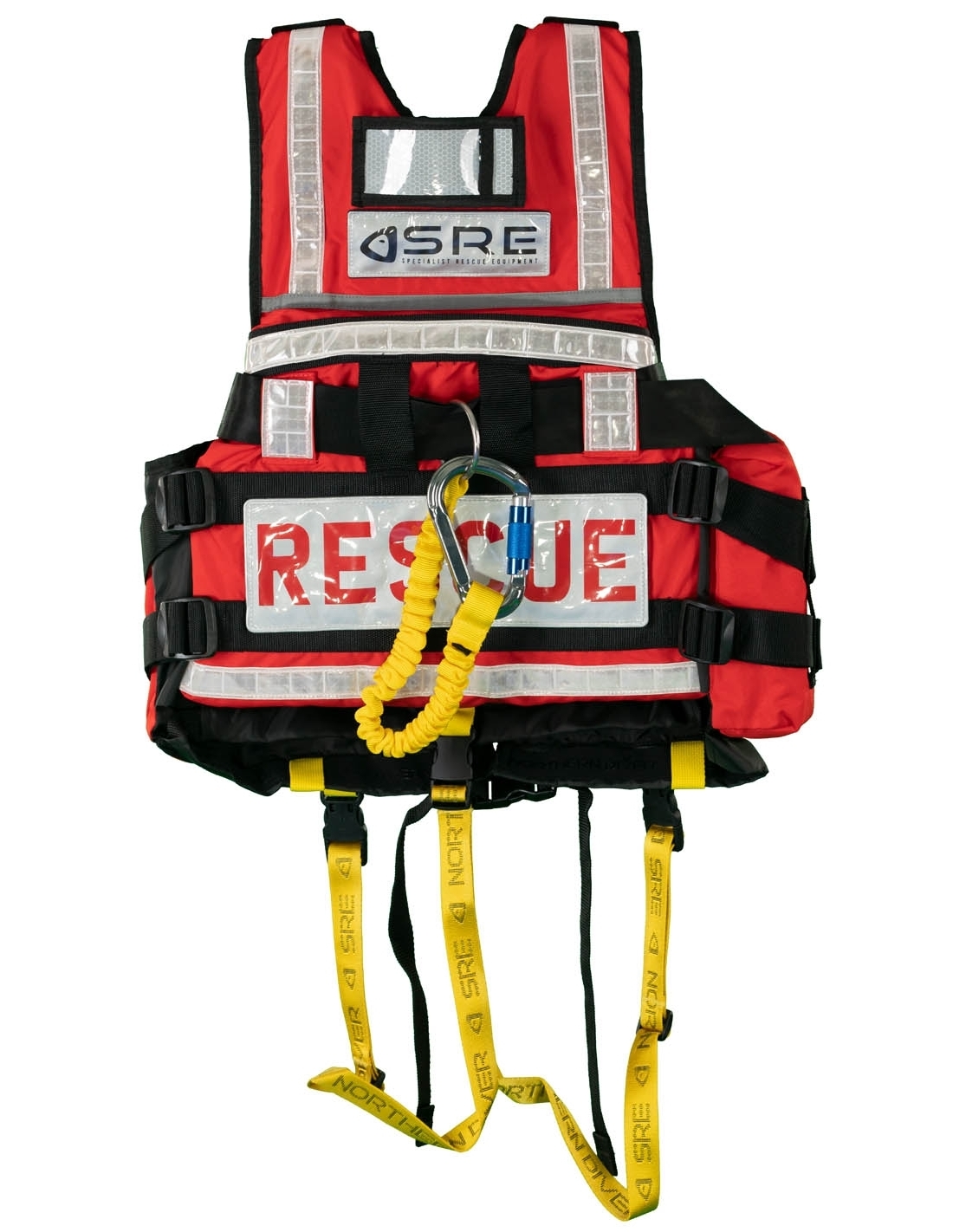 Flytevesten er utstyrt med knivholder, sikkerhetsline med stor karabinkrok, avtagbare skrittstropper, innerlommer til å varme hendene, alternativt oppbevare dokumenter og sikkerhetsfløyte.