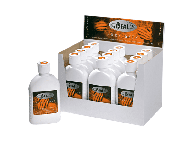 Pure Grip flytende kalk fra Beal øker friksjonen i hendene ved klatring, buldring, vektløfting og turn