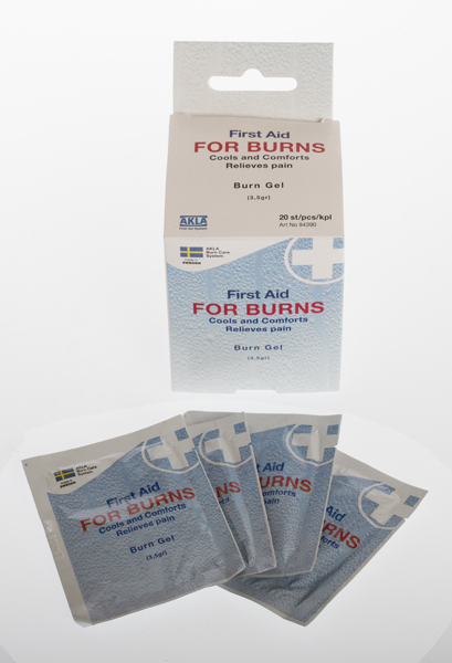 Branngelé for hurtig lindring og nedkjøling av små brannskader.