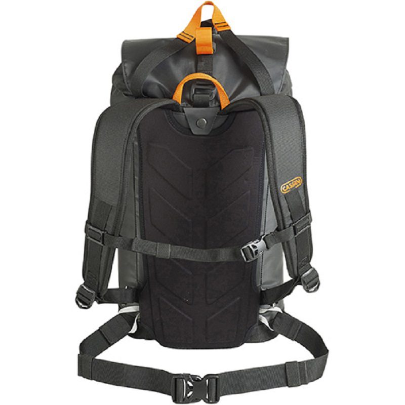 Heisesystemet er justerbart og kan tilpasses ut fra hvor full sekken er. Ideelt er sekken lastet til 25L når den heises. Når sekken henger i den primære heiseløkka har du selvsagt tilgang til hovedrommet. Bare sett en skrukarabiner i hovedløkka og en støttekarabiner i den andre løkka, så kan du åpne sekken uten å koble den fri.