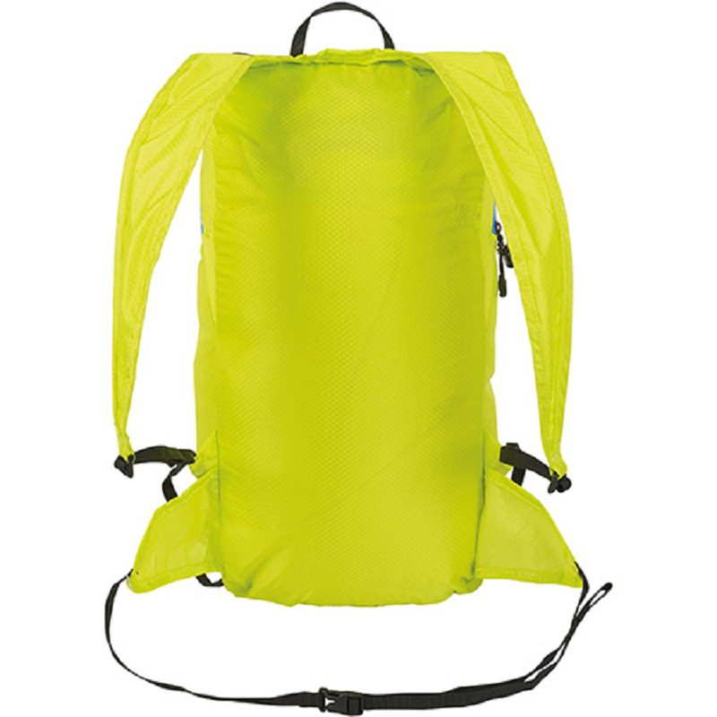 - Meget lett 15-liters sekk lagres i en egen pose som kan bæres i livet når den ikke er i bruk