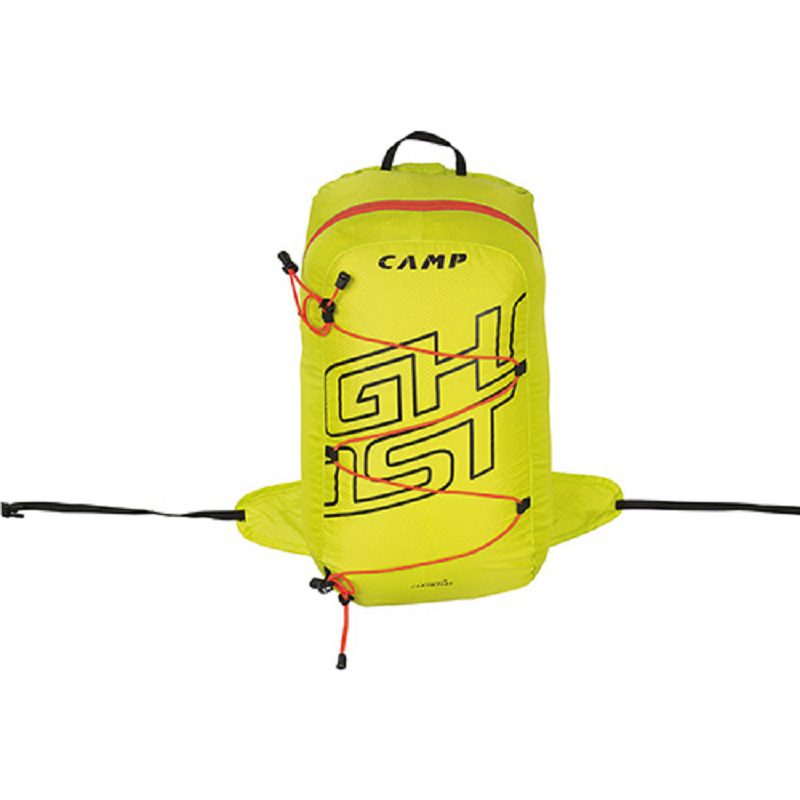 Camp Ghost sekk er en super lett og kompakt sekk for å bære det viktigste på kortere utflukter som dagsturer eller topp jakt. Eksterne elastiske stropper kan brukes til å komprimere sekken og bære lag, og et enkelt elastisk ledningssystem fester sikkert et sett med trekkstenger. Det nye super lette stoffet har en veldig høy strekk styrke og er belagt for ekstra beskyttelse mot fuktighet og slitasje. Når Camp Ghost sekk ikke er i bruk kan den pakkes ned i en lomme som deretter kan bæres rundt livet eller i lokket på en større pakke.