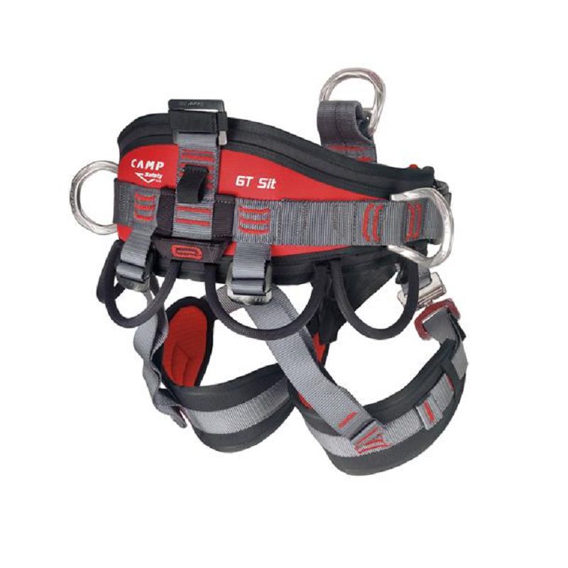 Camp gt sit er utviklet ut fra funnene i Camps «SOSPESI» forskningsprogram som ga ny innsikt i suspensjonstraumer. Den nyskapende forbindelsen mellom midjebelte og benslynger gjør GT Sit behagelig både under fjæring og på bakken. Polstringen bruker varierende tykkelser og stivhet for å gi riktig mengde støtte og komfort for alle deler av kroppen.