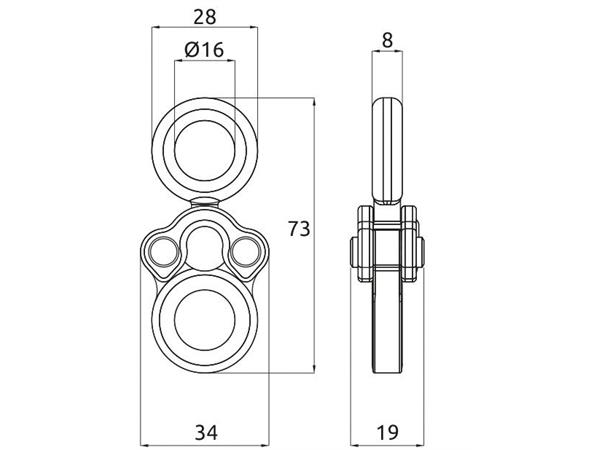 Hovedstrukturen er laget av karbonstål med dobbel korrosjonsbeskyttelse. Det ene øyet er laget av rustfritt stål mens det andre er i aluminium. I begge øyene medfølger silikonpakninger for å holde metalliske produkter i fast posisjon. For tilkobling av tekstilprodukter kan silikonpakningene fjernes.
