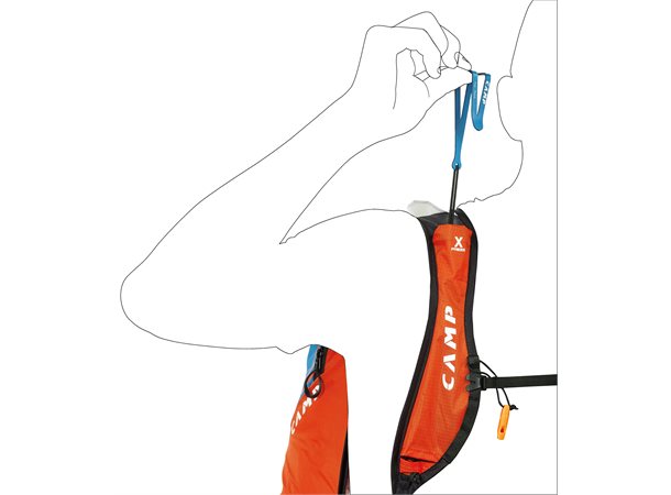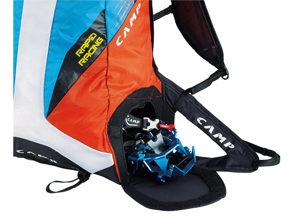 For å unngå å ta av deg sekken har Rapid Racing X-Press skilagringssystem for enkelt bytte mellom stegjern og ski, samt egen borrelåslomme for stegjern på siden av sekken. Skilagringssystemet X-Press har strikk i øvre feste slik at det ikke er i veien når systemet ikke i bruk. Løkken for ski i bunnen av sekken kan justeres for perfekt tilpassing til skibredden. Et alternativ er Camp Rapid