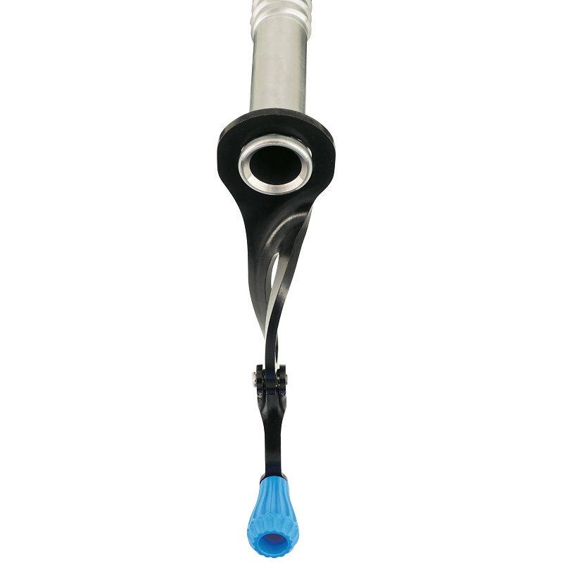Sveiva åpner du fra ytterst på hengeren. Det gjør at den er et stykke ut fra isen og gir deg større arbeidsrom når du skal skru. I tillegg blir den sentrert på skruen, og gir mindre vridning og enklere skruing. Selve hodet er naturligvis fargekodet for å skille lengdene fra hverandre.