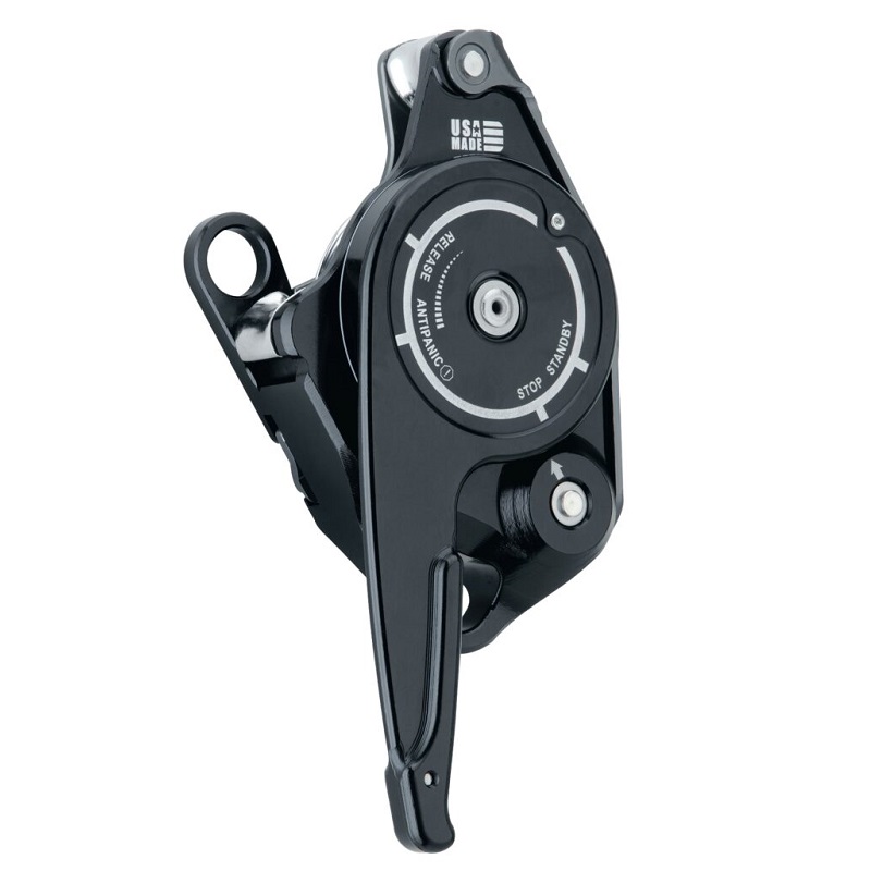 - Enkel av- og påmontering av tau uten å ta av enheten. Tauet er sikret med en innovativ dobbeltlåset sideplate som er uavhengig av taubremsens festepunkt.