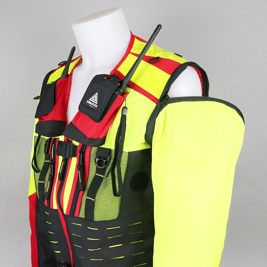 Dimatex FURY redningsjakke har flere gode egenskaper. Den er designet i lett og pustende mesh for komfort og har avtagbare ermer for variert bruk eller temperaturregulering. Jakken er godt synlig med en teknologi som håndterer vått klima (Micro-prism retro-reflective surface). Denne jakken gjør deg veldig synlig med fargene og refleksene.