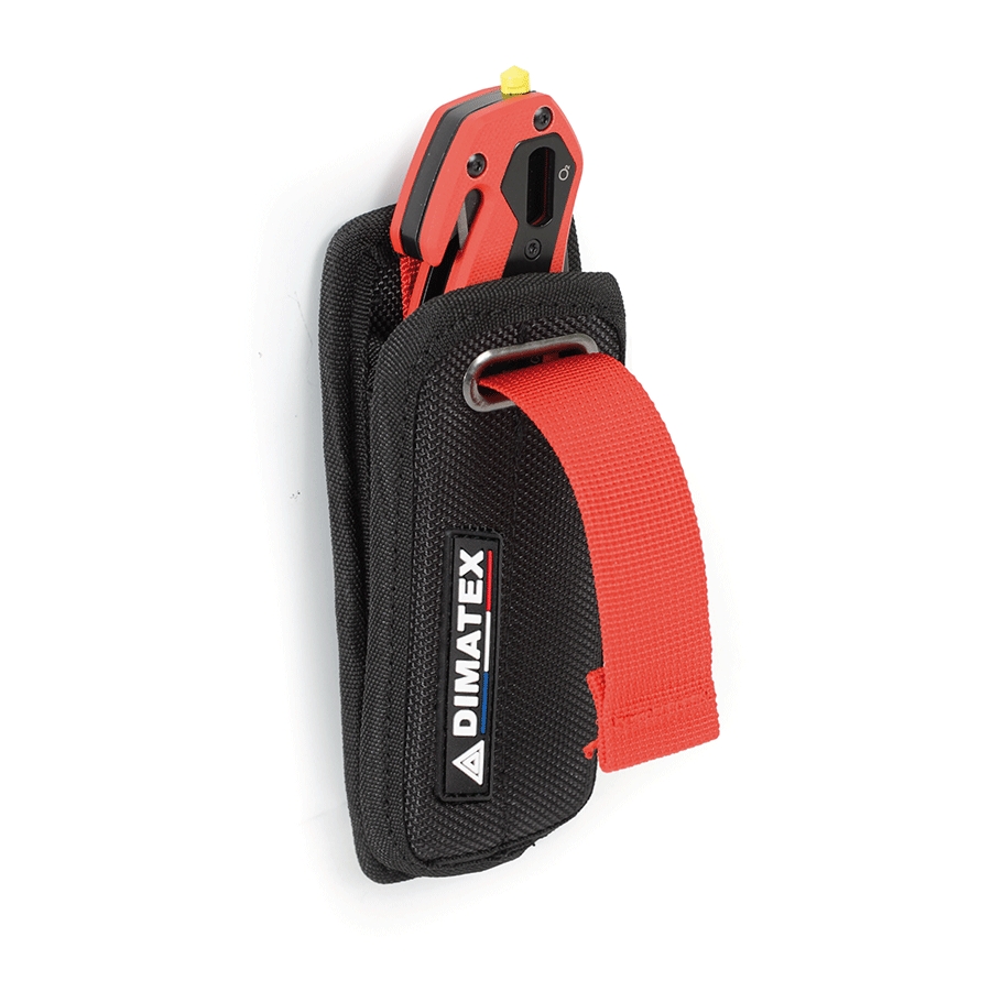 Dimatex Slire til redningskniv, en slitesterk slire for redningskniven New York. Med termoformet skall for støtte og beskyttelse, og MOLLE festesystem på baksiden. Sliren er konstruert slik at redningskniven er lett å få ut. Trekk i den røde flippen og redningskniven kommer opp.