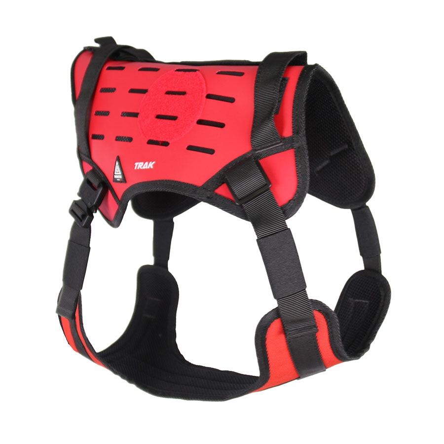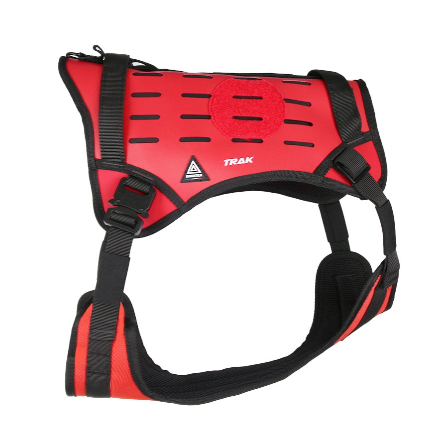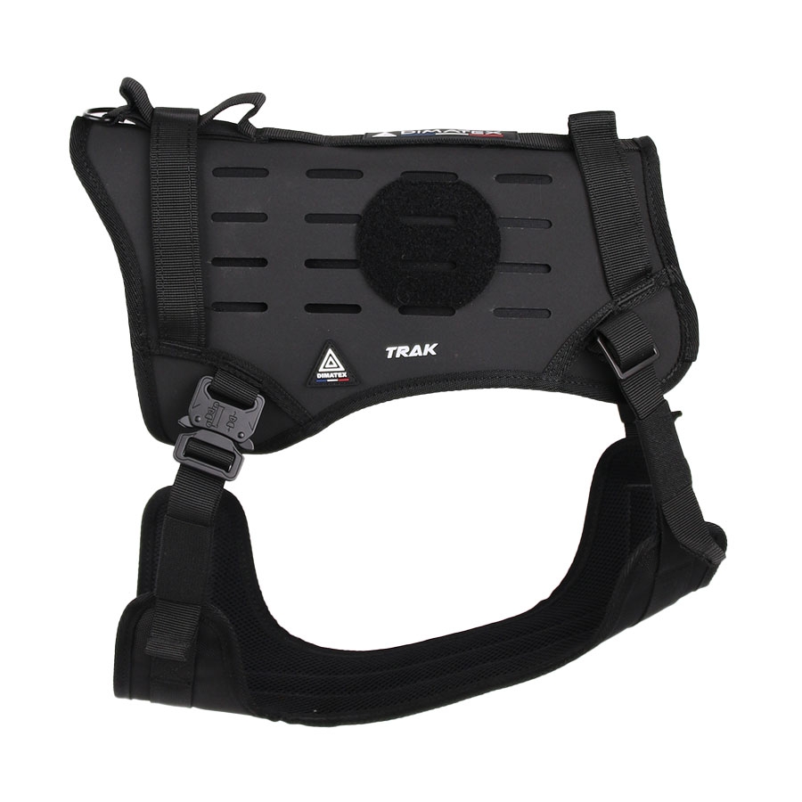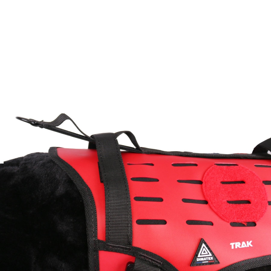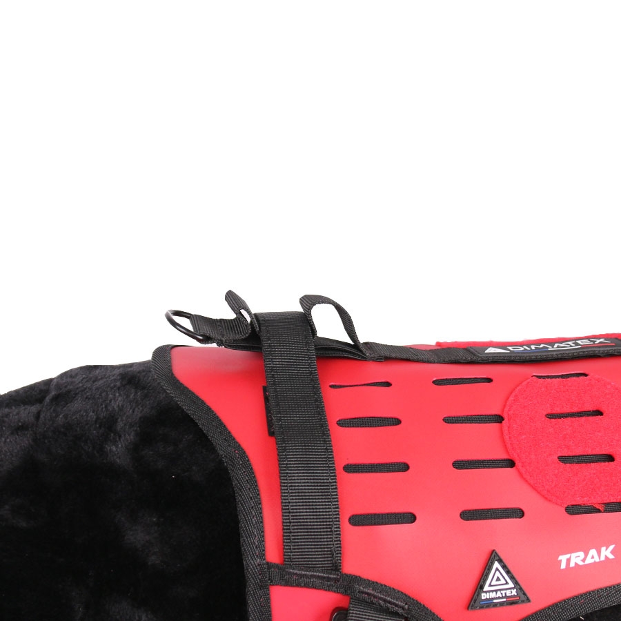 Dimatex Trak hundesele. En meget lett sele som kan justeres på flere områder for god passform og komfort for hunden, og med mollesystem for flere muligheter. Selen har tre håndtak for håndtering og kan festes med borrelås når de ikke er i bruk for å forhindre utilsiktet hekting.