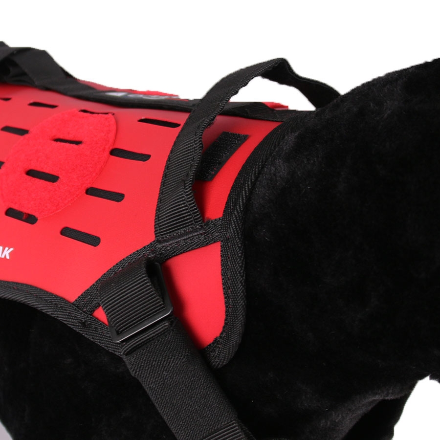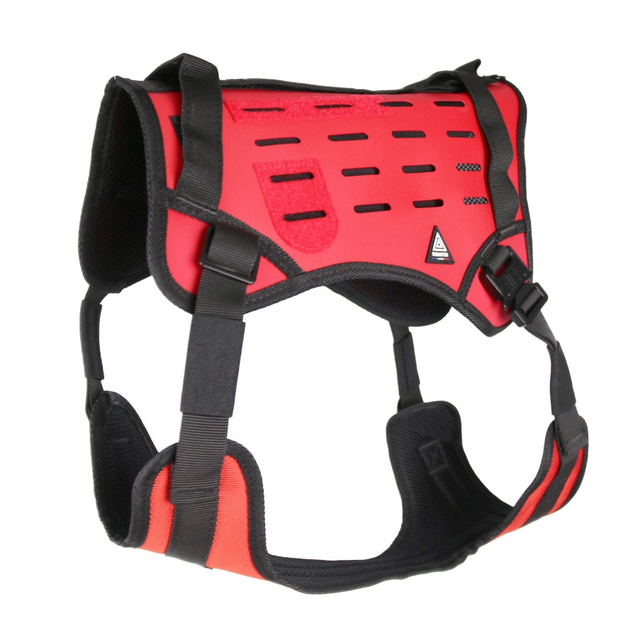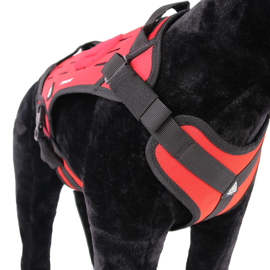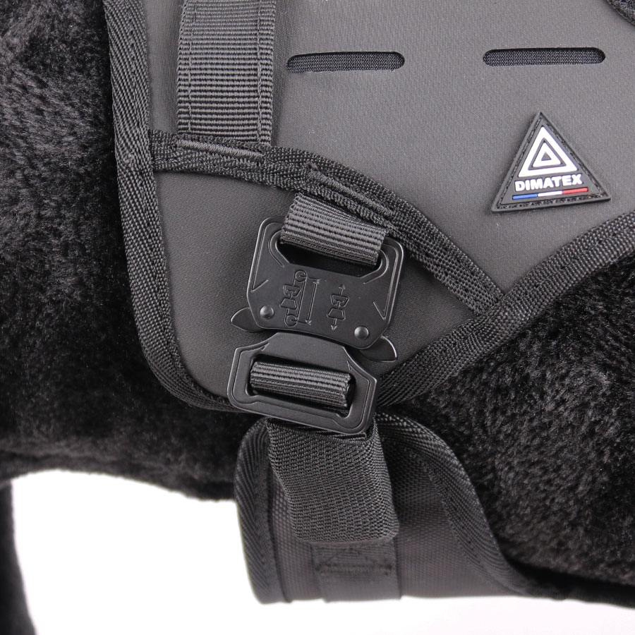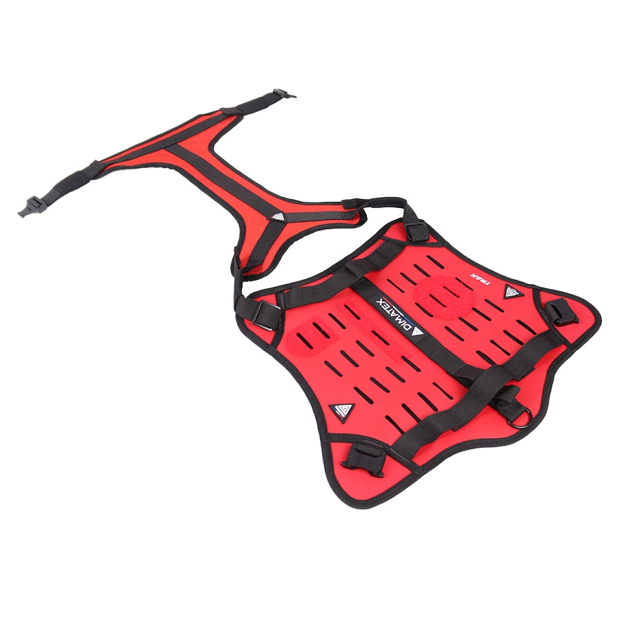 Dimatex Trak hundesele. En meget lett sele som kan justeres på flere områder for god passform og komfort for hunden, og med mollesystem for flere muligheter. Selen har tre håndtak for håndtering og kan festes med borrelås når de ikke er i bruk for å forhindre utilsiktet hekting.