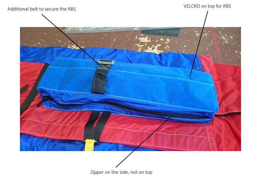 Hvis den ikke brukes eller til pakking av gjenopprettingsposen, ligger den ganske enkelt flatt på Rescuebaggens topp, under bruk åpnes den av Redningsmannen og betjenes med en hånd.