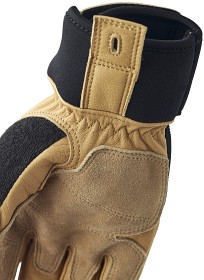 Håndleddet har en stabil neoprenmansjett som justeres med borrelås for en behagelig passform. Den går passe langt opp på håndleddet ifht klokkebruk. Hansken har også en hempe med opphengshull som lar deg feste hanskene med en karabinkrok til for eksempel selen når de ikke er i bruk.