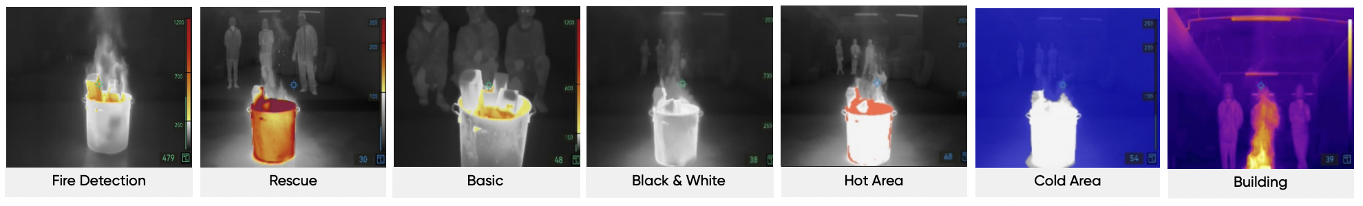 Fargepaletter . Basic, Black Hot, White Hot, Fire Detection, Rescue, Hot Area, Cold Area, Building