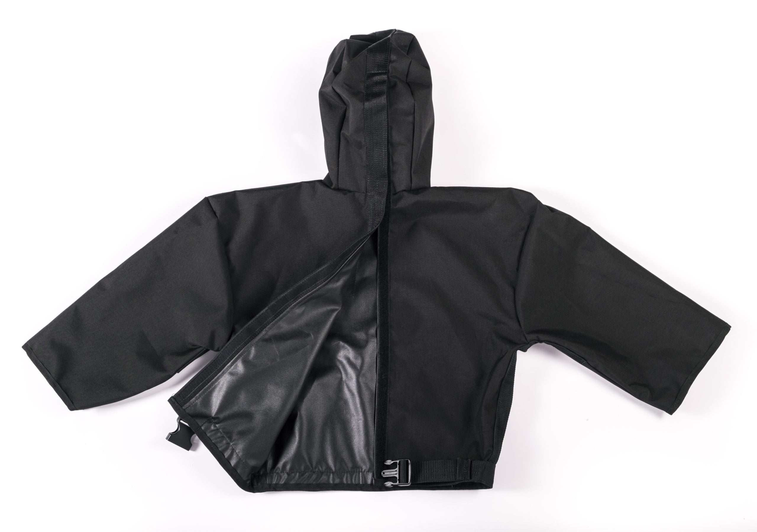 Jakken ble designet for å at brukere kunne gjøre mann over bord mindre synlig for søk og redningsøvelser. Den dekker hodet og øvre del av dukkens torso, slik at man i åpent vann ser mindre av refleksene og fargen fra dukken.