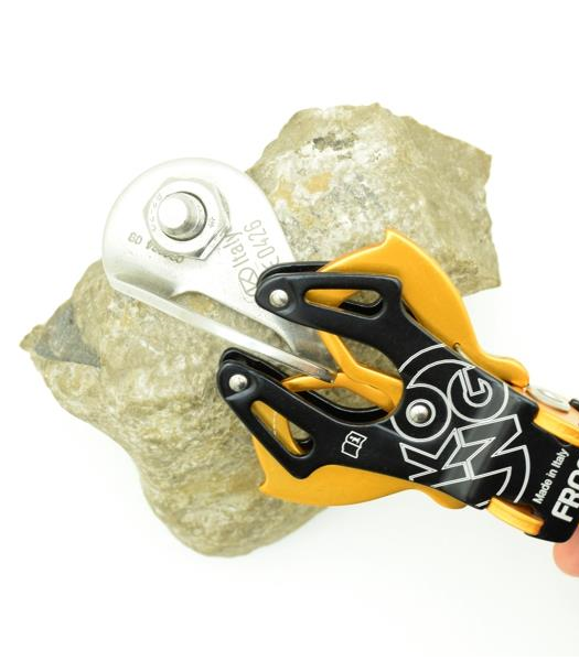 KONG Frog 360 er en spennende variant av KONGs berømte FROG-kontakt. Denne varianten har en tekstilvennlig svivel som betyr at du kan koble på slynger eller andre tekstilprodukter direkte på, uten karabin i mellom. Svivel gjør også at man unngår tvinn på systemet.