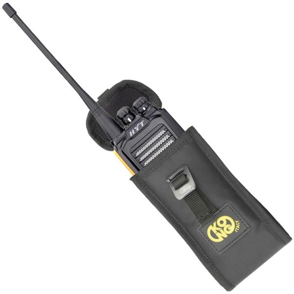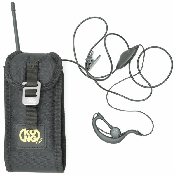 KONG Talkie Bag sambandslomme kan enkelt kan monteres på selen med borrelås. Sidene på lommen er elastiske for å tilpasse seg forskjellige størrelser på samband, også har den justerbar lukking med metallspenne.