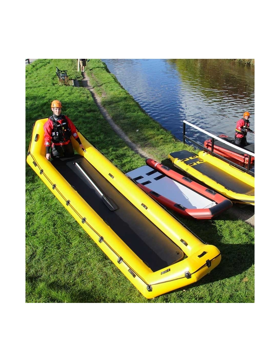 Åpningene i begge ender av flåten gjør det raskt og enkelt å berge de som behøver hjelp på en trygg måte. Redningsflåten kan enkelt bæres frem til vannet da totalvekt er kun 22kg. Ved berging på is kan flåten transporteres effektivt frem til råket.