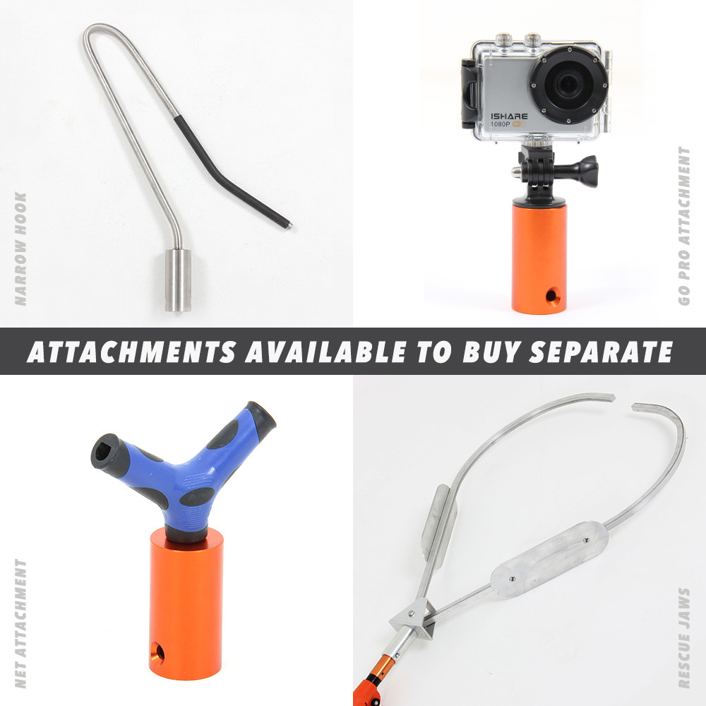 Hver stang har justerbare seksjoner med sikre klemmer for rask uttrekking og tilbaketrekking. Redningsstangen har en bajonettkobling i toppen for rask og enkel montering av tilbehør, noe som gjør den tilpasningsdyktig for ethvert scenario.