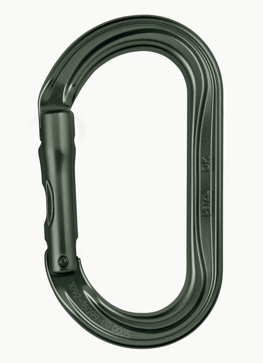 Petzl Ok svart karabin er en lett, men sterk oval karabin. Mange trinser må brukes sammen med en oval karabin for å fungere ordentlig. Med dens form er den godt egnet til å bruke sammen med brede komponenter, som f.eks tauklemmer og trinser. I tillegg er den også en svært praktisk standplasskarabin, spesielt på storveggsklatring. Petzl Ok svart karabin kan kobles med en Petzl Captiv slik at karabinen holdes integrert med enheten, og for å unngå at den snur seg. Finnes med låsesystem triact-lock og screw-lock, og uten lås.