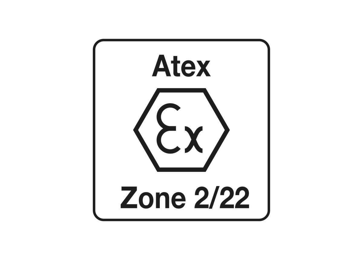Det oppfyller ATEX sone 2/22 (II 3 GD Ex nA ic IIB T4 Gc tc IIIC T135 ° C Dc). Sertifiseringskrav for arbeid i eksplosive miljøer.