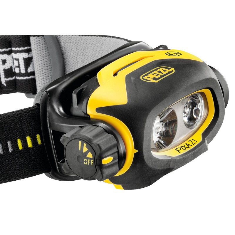 Petzl Pixa Z1 hodelykt er en robust og vanntett lykt med 100 lumen, sertifisert til bruk i eksplosive omgivelser. Lykten er motstandsdyktig mot kjemikalier, fall, støt og knusing. Den kan brukes på hodet, festet til hjelmen med en monteringsplate (inkludert) eller plassert på bakken.