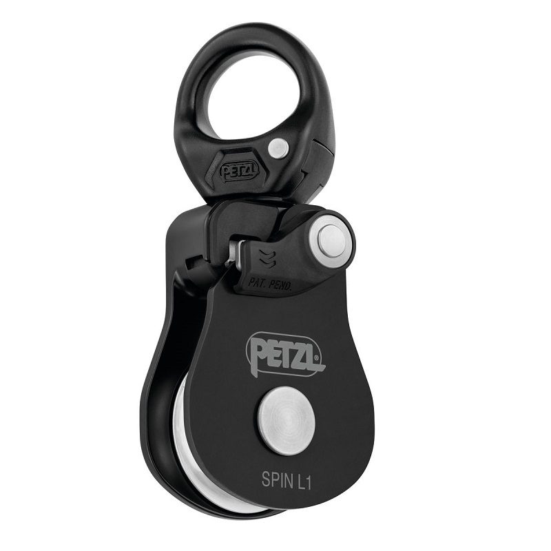 Petzl Spin L1 trinse er kompakt og meget høyeffektiv med en swivel integrert. Trinsen kan åpnes selv når den er festet til ankeret, og er designet for maksimal enkelhet ved oppsett av taljesystemer og oppspente highlines. Enkel og rask trippelbevegelse for å åpne den bevegelige sideplaten, selv med hansker. Rød indikator gir en visuell advarsel når den bevegelige sideplaten er åpen.
