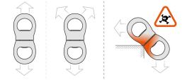 - Swivel L: Konstruert for belastning av to personer. Det kan festes opptil tre karabiner i endene. Veier 150 g og bruddstyrken er på 36 kN