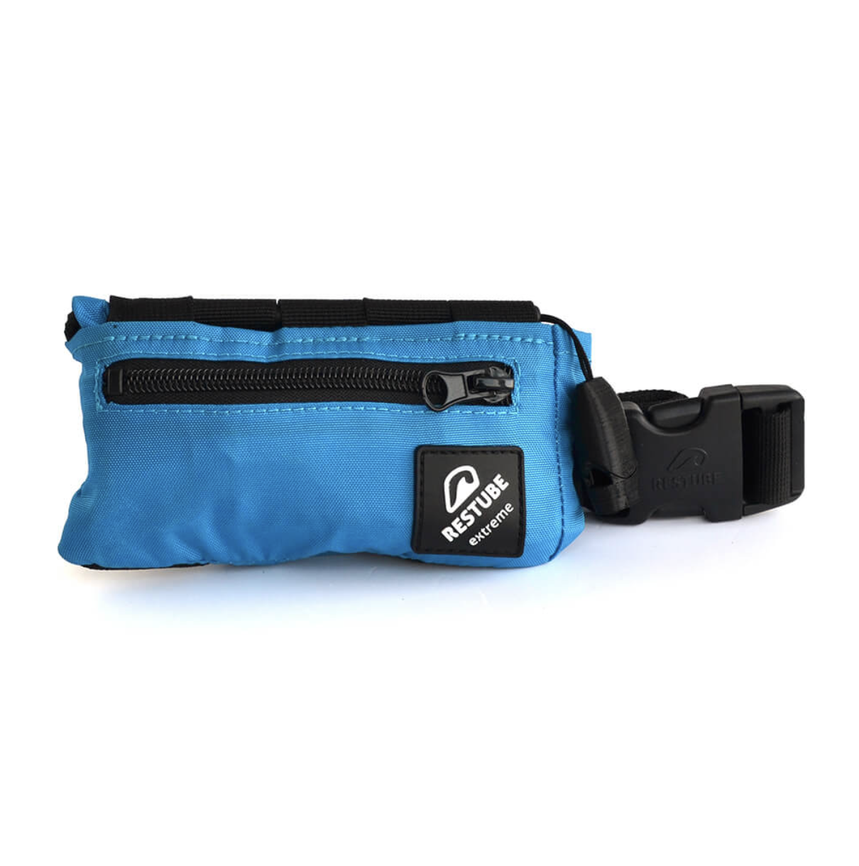 Restube Extreme flytetube er gjenbrukbar ved å skru inn en ny original 16g CO2-patron og lett å pakke om. Finnes i fargene azur blå og svart lime.