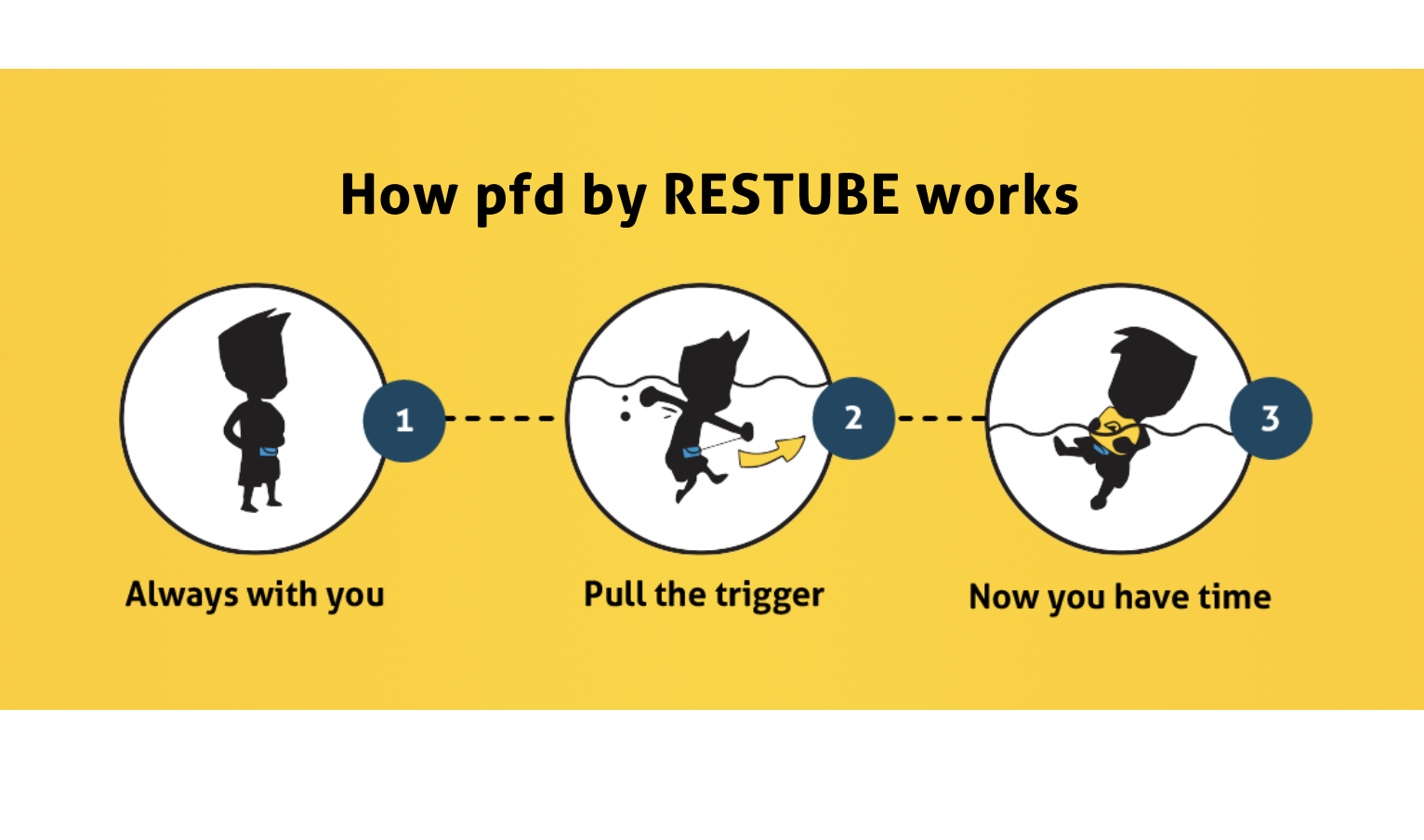 Restube PFD flytevest er perfekt for alle aktiviteter der det kreves CE-sertifisering, som på småbåter samt til stand-up padling dersom en forskriften krever det. I Sveits og ved Bodensjøen må du bruke en sertifisert personlig flyte-enhet (Personal Floating Device)) så snart du er i 300 meters avstand fra kysten.