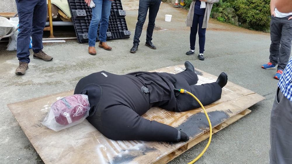 Når treningen er over, bruk spesialventilene og en slange for å tømme vannet, eller hvis du er ute, åpne ventilene for å tømme drakten.