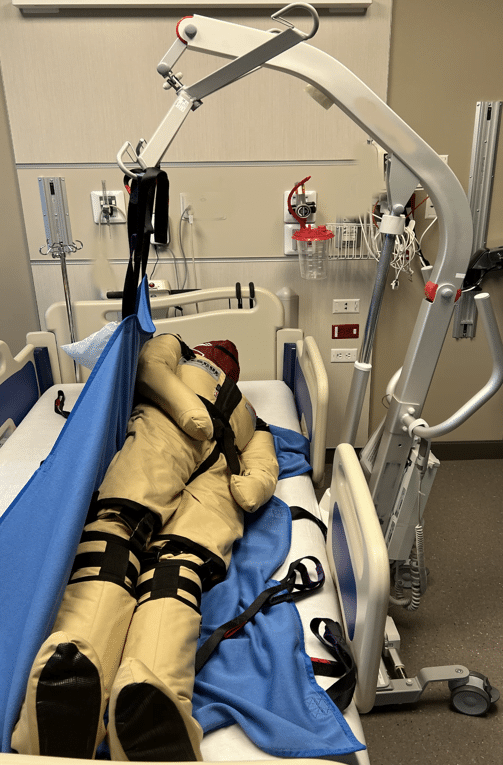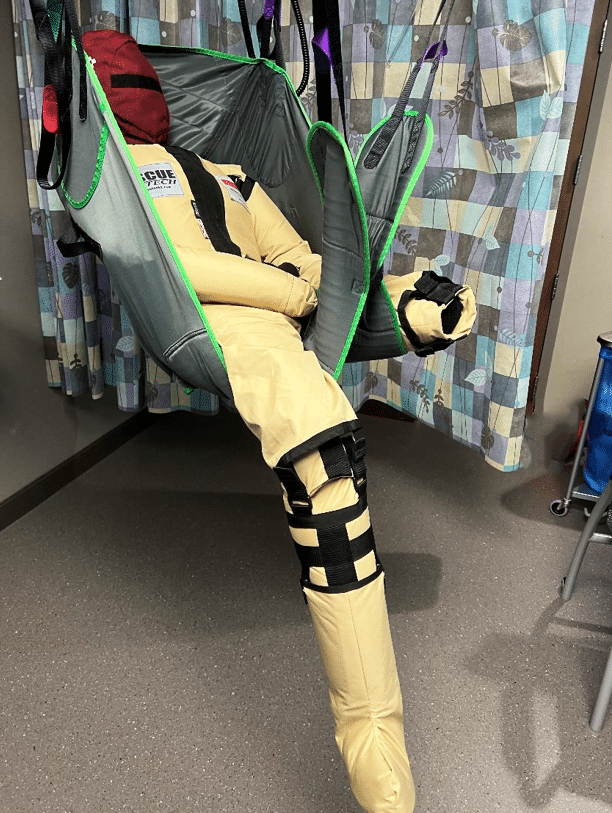 - Borrelåsremmer ved håndleddet gjør at trenere kan holde armene sammen, spenne en arm opp i slyngeposisjon under heising, eller holde fast i slyngen.
