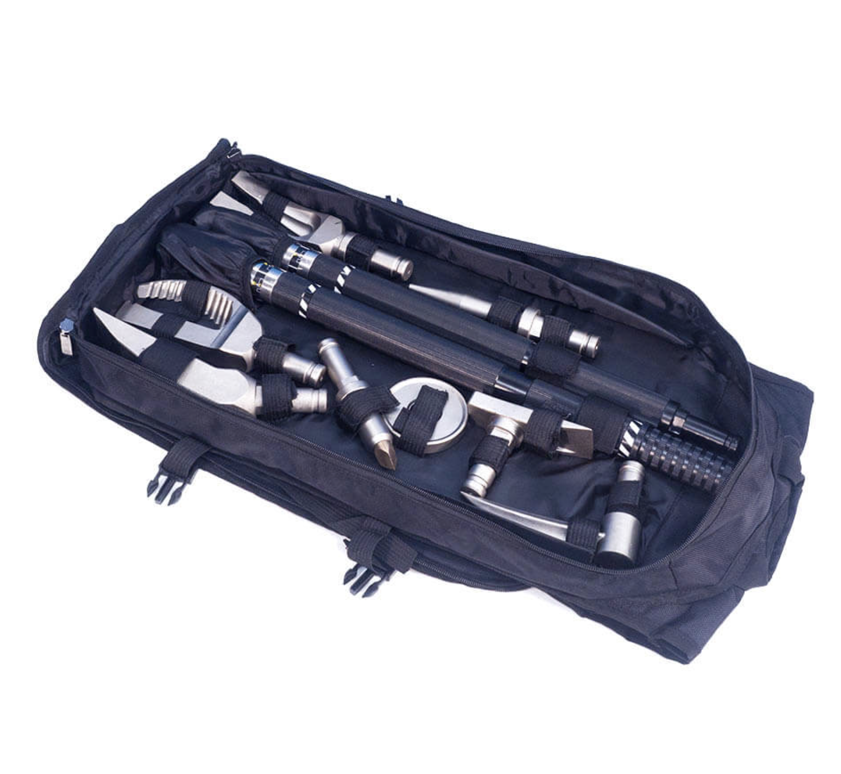 De 7 tilbehørshodene får plass til alt i bærevesken og kobles enkelt til styret, klare til å håndtere mange scenarier.