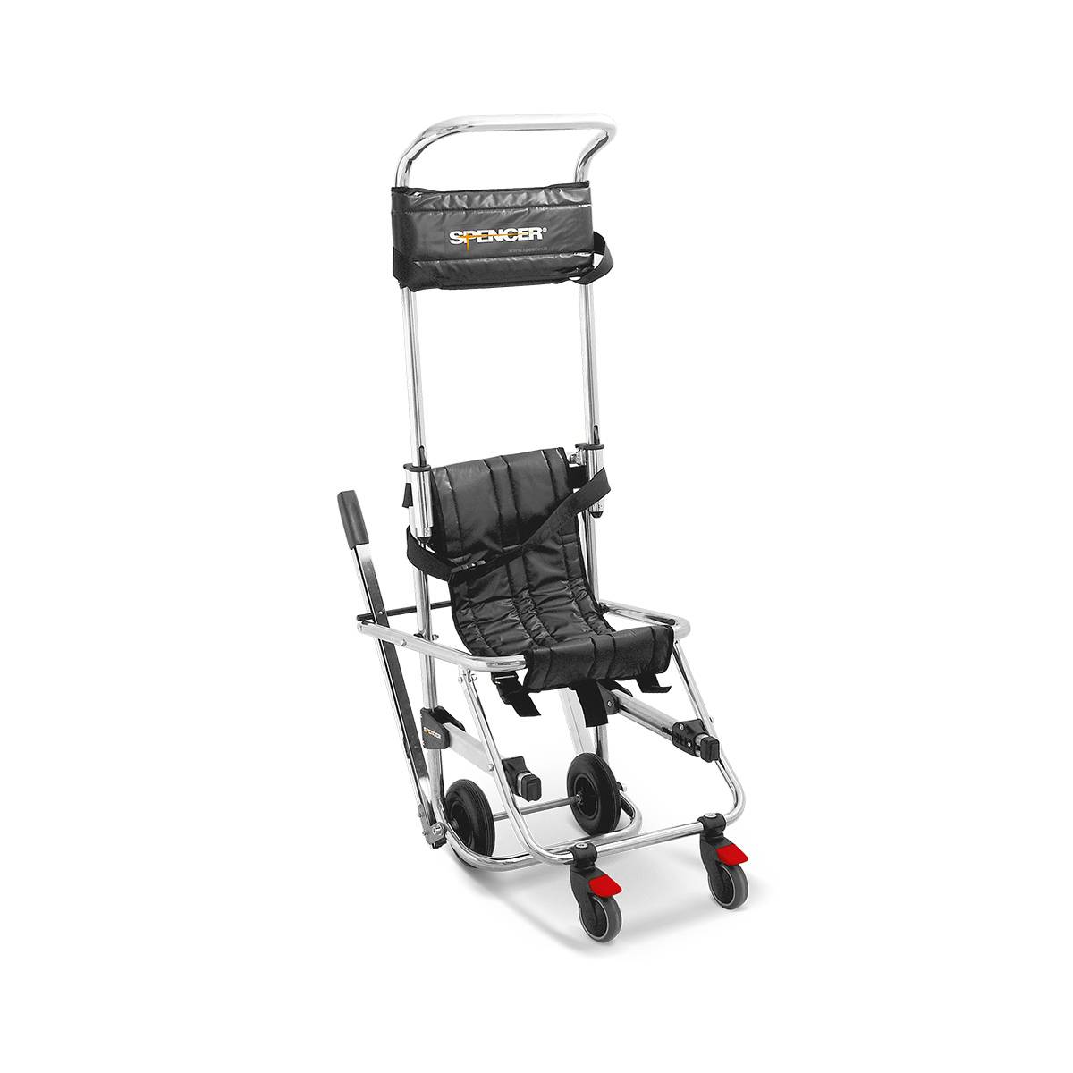 Spencer Skid – E er en evakueringsstol som er ideell for transport og evakuering ned trapper, takket være de integrerte slidere som gjør det enkelt å bevege seg ned trapper. 4 hjul gir god manøvrering på flate overflater.
