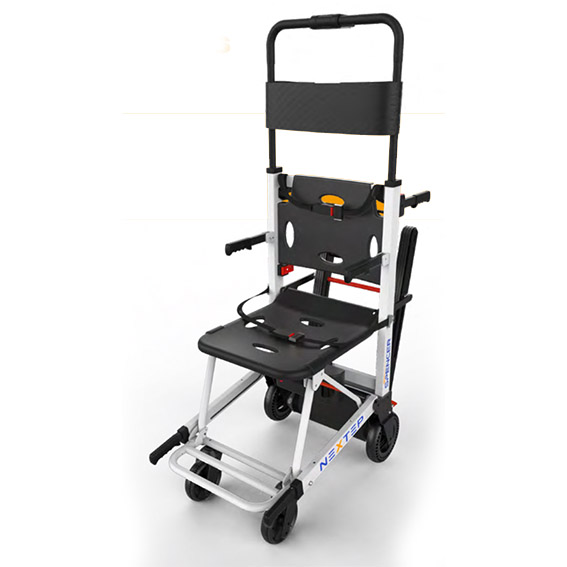 NEXTEP er en motordrevet transportstol designet for pasienttrapping og evakuering. De drevne beltene hjelper til med å bære personer med bevegelseshemmede på en kontrollert, trygg og uanstrengt måte. Laget av aluminiumslegering, NEXTEP er en lett enhet som kan brukes av en enkelt operatør. Den er bygget for å tilby stor manøvrerbarhet takket være de 4 svingbare hjulene med pause og det hurtigfoldbare systemet. Forankringssystemet er 10G-testet. NEXTEPs rammefarge kan være enten hvit, blå eller oransje.