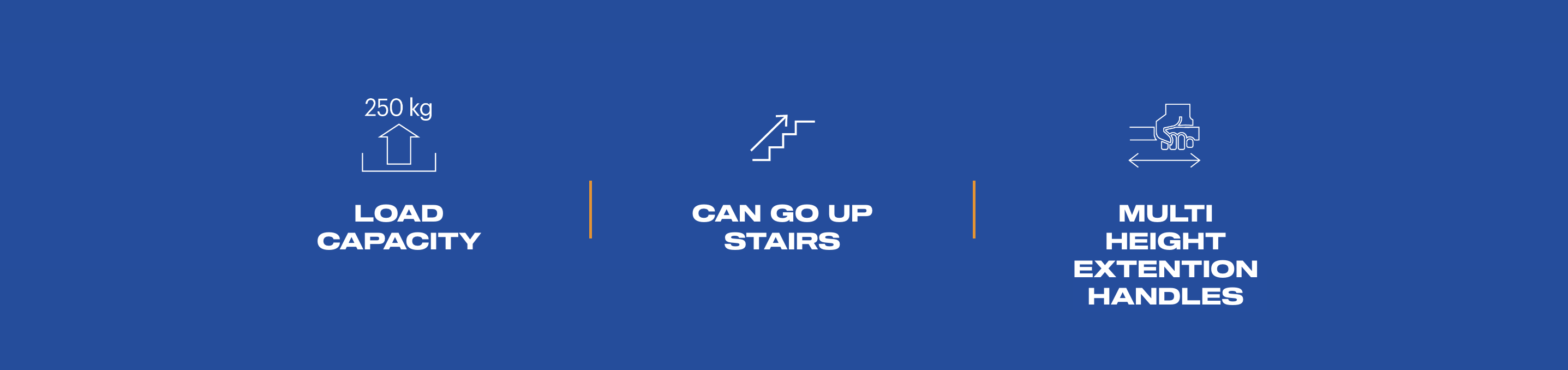 Multi-høyde forlengelseshåndtak gir forbedret grep under trappenedstigning.