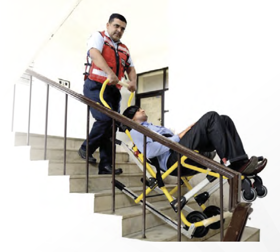 Under en nødsituasjon i bygninger med flere etasjer, når heiser er utilgjengelige eller for trange for båre