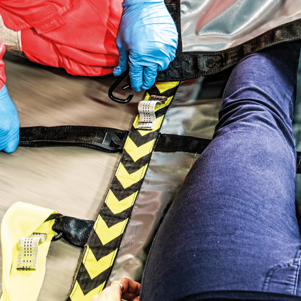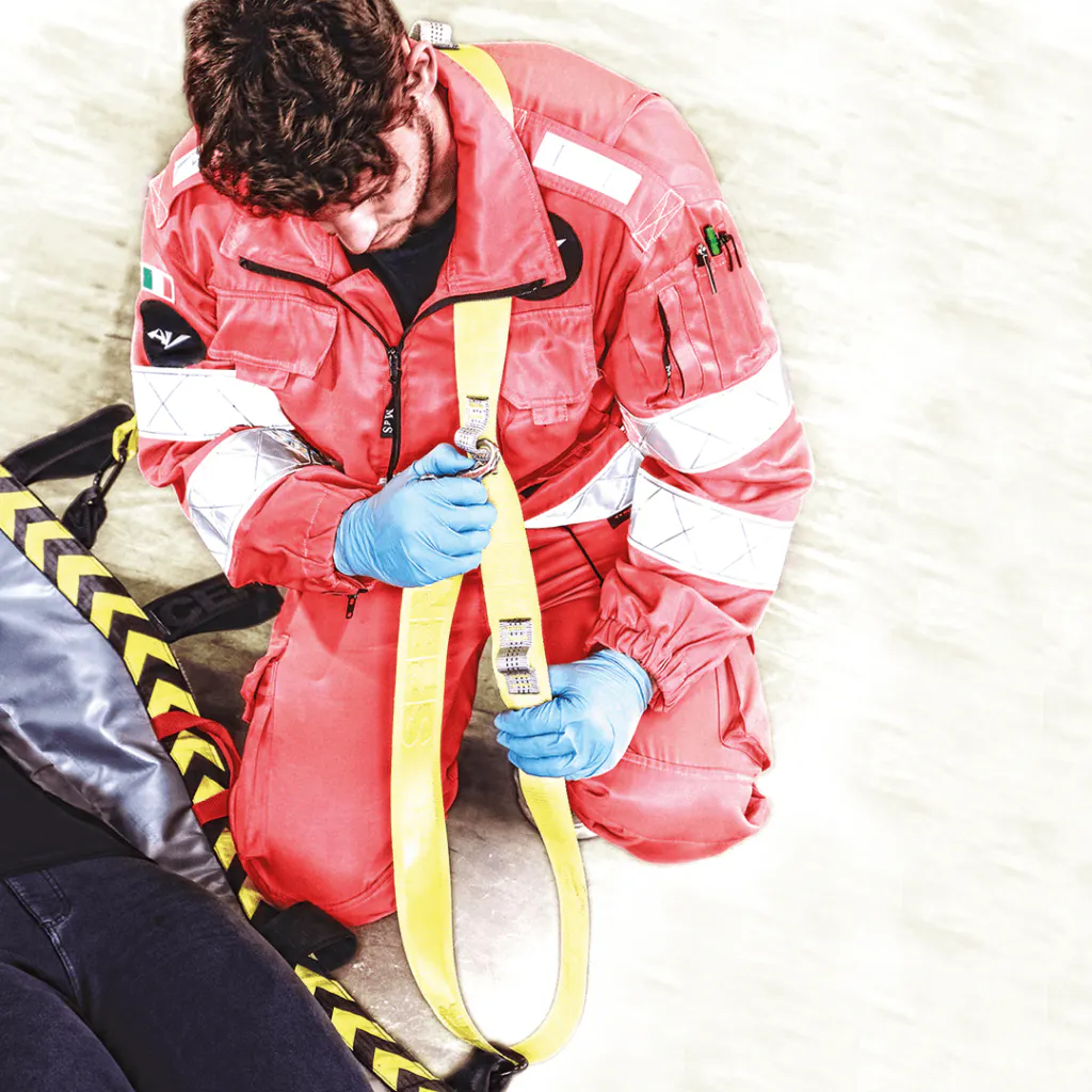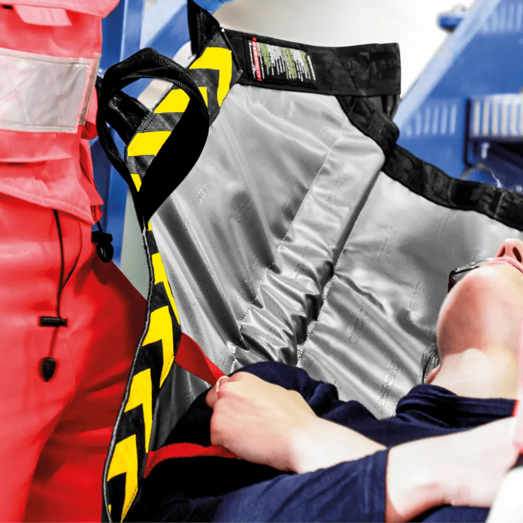 Stroppene lar redningsmennene utføre korrekte løfteprosedyrer, bidrar til en betydelig reduksjon i innsats og reduserer kontakttrykket mellom enheten og operatøren. Det raske valgsystemet for riktig lengde i forhold til høyden på føreren, bidrar til en forbedret lastfordeling. Stroppene kan tas av når de ikke trengs.