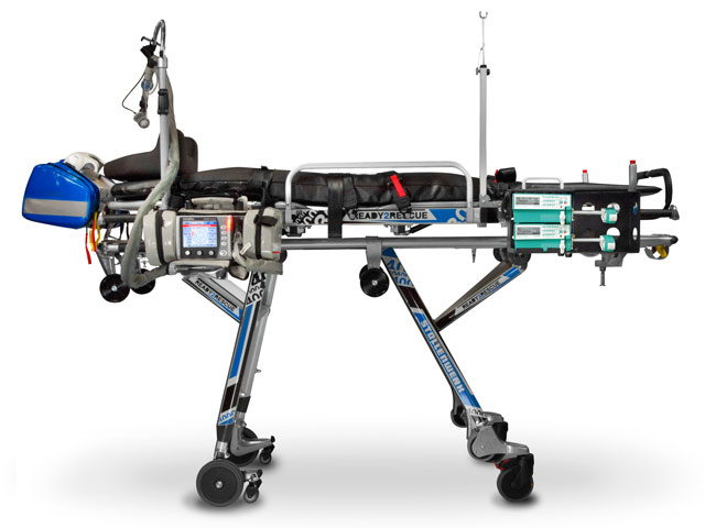 Toppbåren finnes i 4 forskjellige utgaver og vi har valgt til Norge 3006 utgaven, denne har sjokkleie, kneknekk, hjertebrett. Hver båre er kundetilpasset etter de spesifikasjoner ambulansetjenesten har bedt om