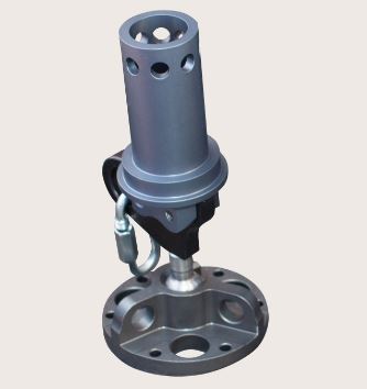 En leddet fot som svinger på en kule, konstruert i rustfritt stål. For ekstremt brede benvinkler kan foten rotere 90 grader til flat posisjon.