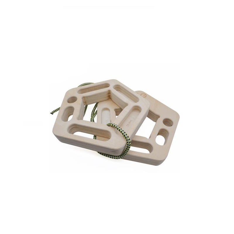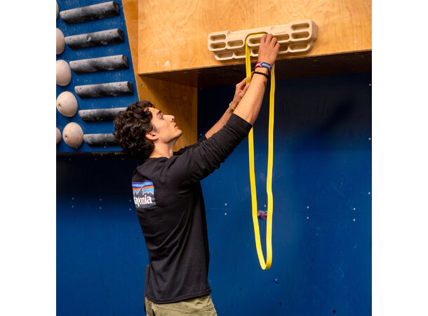 Y&Y VerticalBoard First, et komplett treningsverktøy for litt erfarne klatrere som ønsker solid finger- og overkroppsstyrke. Dette er hengebrettet for deg som ønsker et effektivt treningsmiddel for å utvikle generell klatrefysiske egenskaper. Produktets funksjonelle design gjør montering hjemme eller på et treningsrom enkelt. Du kan gjøre øvelsene enklere ved å koble til strikk (solgt separat) og øke vanskeligheten (minske dybden) ved å plassere innsettbare trebrikker som selges separat.